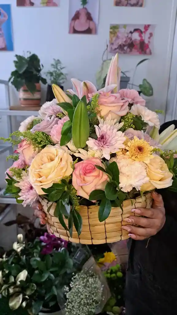 Amor y Arena crea ramos totalmente personalizados para cada persona y ocasión 🥰💐. Canasta de flores grande, en tonos ROSADOS que hacen que tu día se llene de ARMONÍA, PAZ y SERENIDAD.