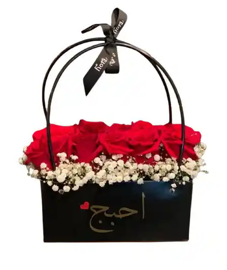 Una elegante canasta negra con rosas rojas intensas y delicados detalles blancos, ideal para una declaración romántica con estilo. Flores frescas de calidad premium, seleccionadas y armadas profesionalmente para un diseño sofisticado y de alto impacto. Algunas flores pueden variar según la disponibilidad de temporada, manteniendo siempre la estética y el valor del arreglo. Incluye tarjeta personalizada sin costo adicional.
