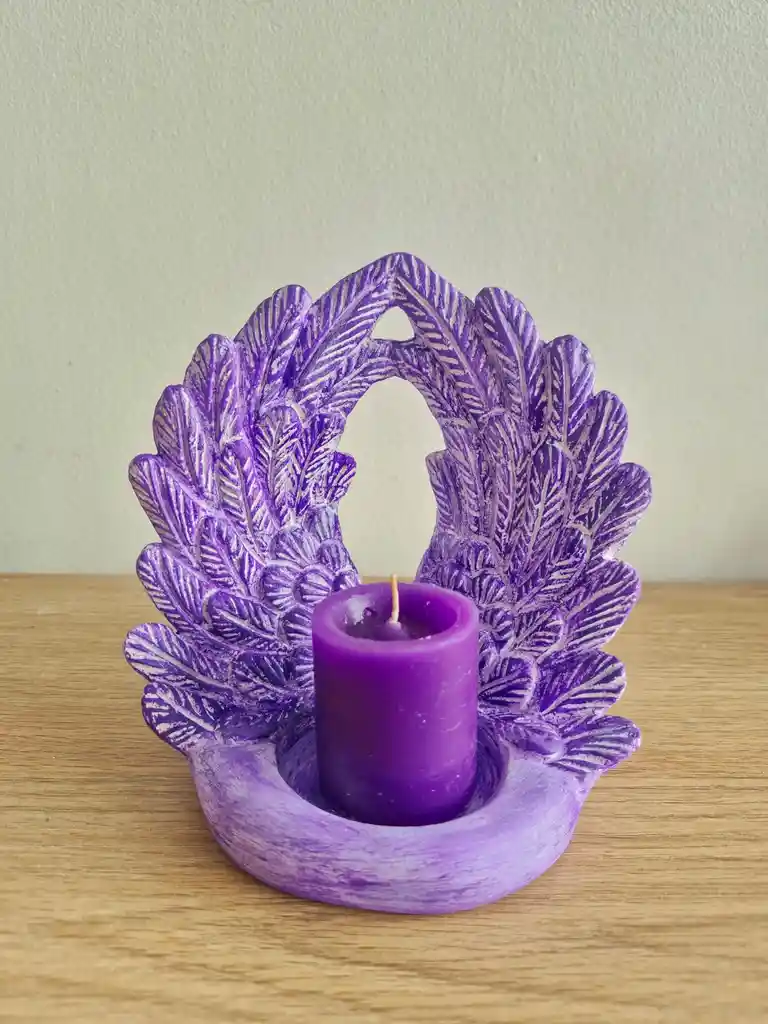 un símbolo de luz, protección y esperanza. Este delicado candelabro con forma de alas de ángel ha sido diseñado para abrazar la llama y convertirla en un mensaje de paz y amor. Cada detalle evoca calma, espiritualidad y conexión, creando un ambiente cálido y lleno de significado en cualquier espacio. Perfecto para momentos de gratitud, meditación, recordación o simplemente para decorar con intención. Porque cuando encendemos una luz, también encendemos el corazón 🤍 ✨ Ideal para regalar o para darle a tu hogar un toque celestial. Pieza de cerámica pintada a mano, acabado envejecido, mate y rústico. Mantrado para lograr armonía en tu vida. Dimensiones: 15.5 cms x 15.5 cms, base 12.5 cms Empacado en caja de cartón, no incluye velones.