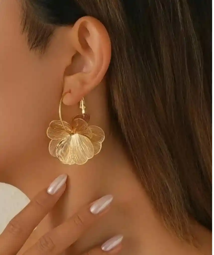 Aretes florales dorados de diseño delicado y liviano. Un accesorio femenino y atemporal que complementa looks casuales o formales con un estilo sutil y sofisticado.