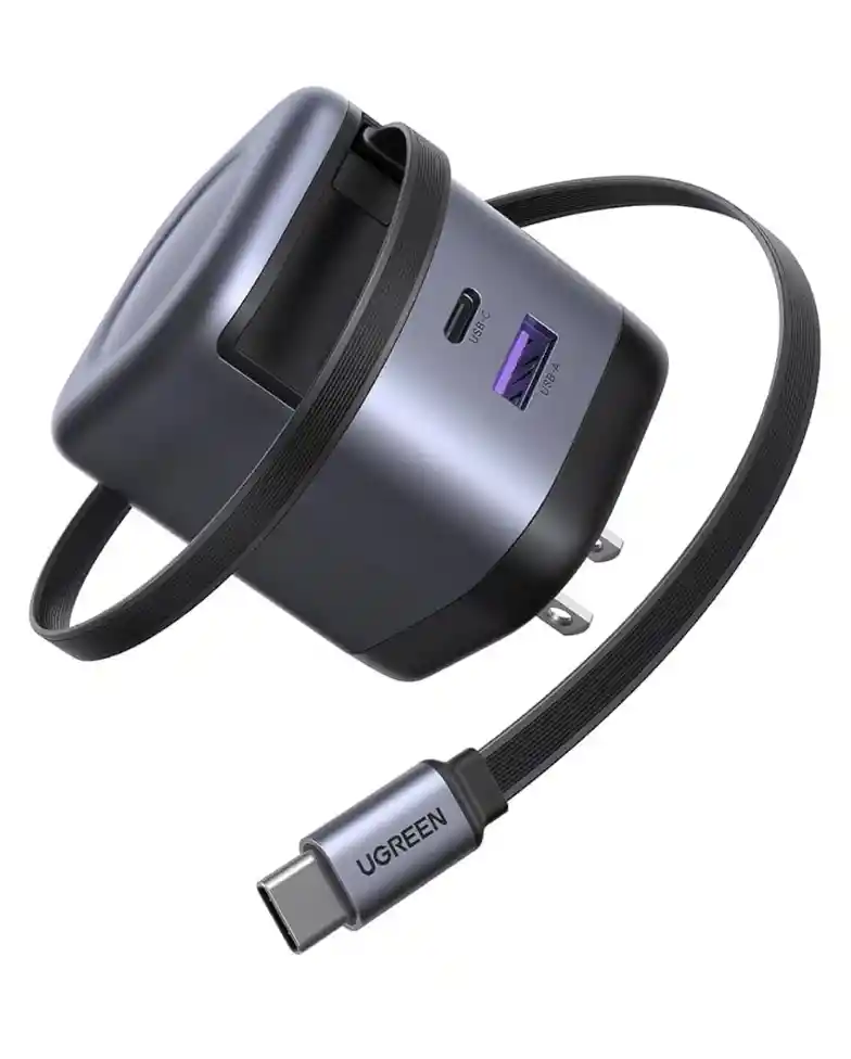El cargador Ugreen 65W Retráctil Tipo C en color gris titanio es la solución ideal para quienes buscan eficiencia y estilo en su carga diaria. Con un diseño compacto y retráctil, este cargador es perfecto para llevar en la mochila o el bolso, ocupando el mínimo espacio sin sacrificar potencia. Su capacidad de carga rápida de 65W permite que tus dispositivos se carguen en un tiempo récord, ideal para aquellos que están siempre en movimiento. Compatible con una amplia gama de dispositivos móviles, este cargador se convierte en un aliado indispensable para mantener tu celular siempre listo para usar. El voltaje de entrada de 12V asegura un rendimiento óptimo, mientras que su conector Tipo C garantiza una conexión segura y versátil. Con el cargador Ugreen, disfrutarás de una experiencia de carga sin complicaciones, combinando tecnología avanzada con un diseño moderno y funcional. ---Garantía del producto Garantía del producto 12 meses por defecto de fábrica, no cubre daños ocasionados por golpes, malas conexiones, desgaste normal, efectos externos (polvo, humedad, descargas eléctricas), manipulación técnica por personal no autorizado. Guardar la factura para efectos de la garantía.