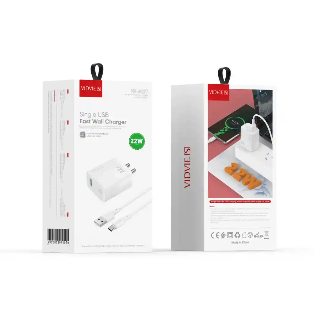 Cargador Completo 22w (Adaptador de corriente + Cable USB a tipo C 1 mtr) VIDVIE VS-A12T