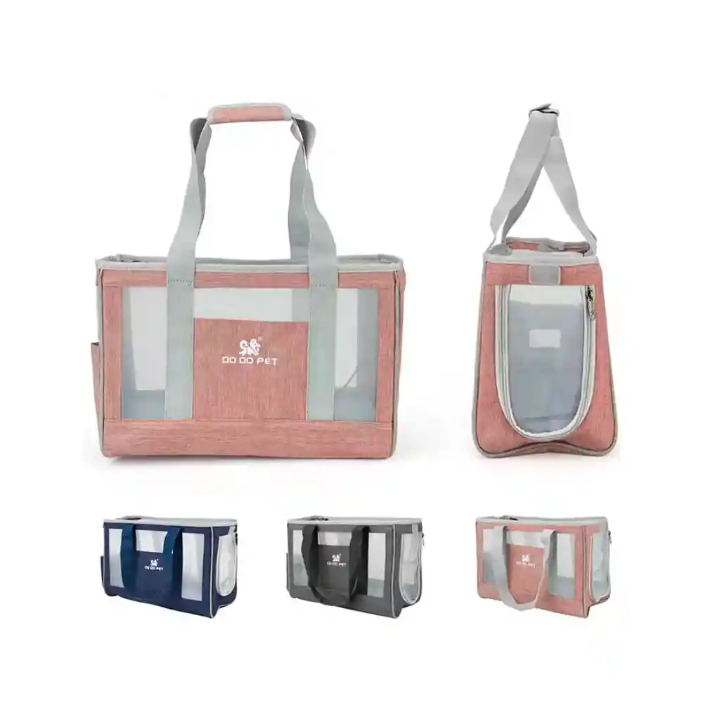 Cargador rectangular en Lona gruesa impermeable de alta resistencia, con amplios espacios en malla para una mejor ventilación y visualización, con 2 bolsillos, entrada superior y lateral con cremallera, cinturón de seguridad, base semirigida acolchonada para mayor estabilidad y confort. Apto para cabina de avión.