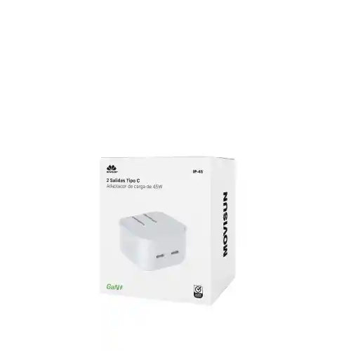 Cargador Movisun IP-45 45W GaN Dual USB-C MacBook iPhone Xiaomi Potencia extrema y diseño inteligente. El Movisun IP-45 es un cargador de última generación con tecnología GaN (Nitruro de Galio), diseñado para quienes necesitan cargar múltiples dispositivos de alto rendimiento de forma simultánea. Con sus 45W de potencia real, es capaz de alimentar desde una MacBook hasta dos iPhone al mismo tiempo con carga rápida. Características Destacadas: Tecnología GaN Eficiente: Permite un cargador más compacto que gestiona mejor la temperatura gracias a su avanzada disipación de calor. Doble Puerto Tipo C: Equipado con 2 salidas USB-C, permitiendo cargar dos iPhone o dispositivos compatibles simultáneamente sin perder eficiencia. Potencia de 45W: Salida robusta ideal para dispositivos de alta demanda, incluyendo laptops compactas. Especialista en Carga Turbo: Optimizado con protocolos de alta velocidad para diversas marcas: iOS PD 35W: Carga ultra rápida para las series iPhone 15, 16 y 17. Mi Turbo Charge 27W: Rendimiento optimizado para dispositivos Xiaomi. Cuidado de Batería: Su tecnología inteligente cuida la batería del celular, evitando el desgaste prematuro por sobrecarga. Seguridad y Calidad: Producto certificado con sello de Calidad Original, garantizando un uso seguro para tus equipos más valiosos. ¿Qué incluye tu compra? 1 Adaptador de corriente Movisun IP-45 45W GaN Dual. Empaque original de lujo con sello de garantía. Por qué elegir el IP-45: El Movisun IP-45 es la solución definitiva para usuarios multi-dispositivo. A diferencia de los cargadores convencionales, su tecnología GaN asegura que el dispositivo no se sobrecaliente incluso cargando una MacBook o dos smartphones a la vez. Es la inversión perfecta para proteger y potenciar tus equipos premium.