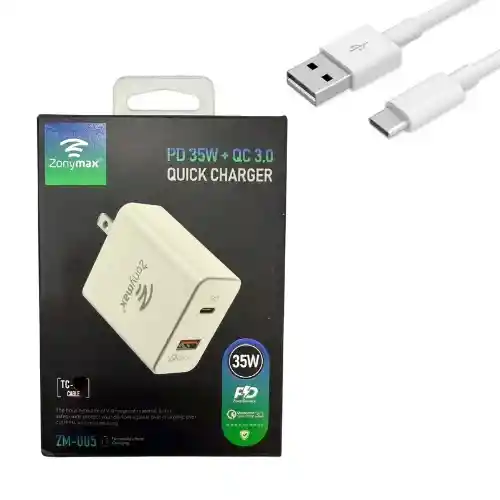 Cargador Tipo C Carga Rápida Zonymax Original – 3.0A / 35W Potencia y velocidad para tus dispositivos con el cargador Tipo C Zonymax original, diseñado para ofrecer carga rápida y segura. Ideal para celulares, tablets y otros equipos compatibles con puerto USB-C. Características: ✔️ Marca: Zonymax (Original) ✔️ Potencia: hasta 35W ✔️ Salida: 3.0A ✔️ Puerto: Tipo C ✔️ Tecnología de carga rápida ✔️ Diseño compacto y resistente ✔️ Protección contra sobrecarga, sobrecalentamiento y cortocircuito