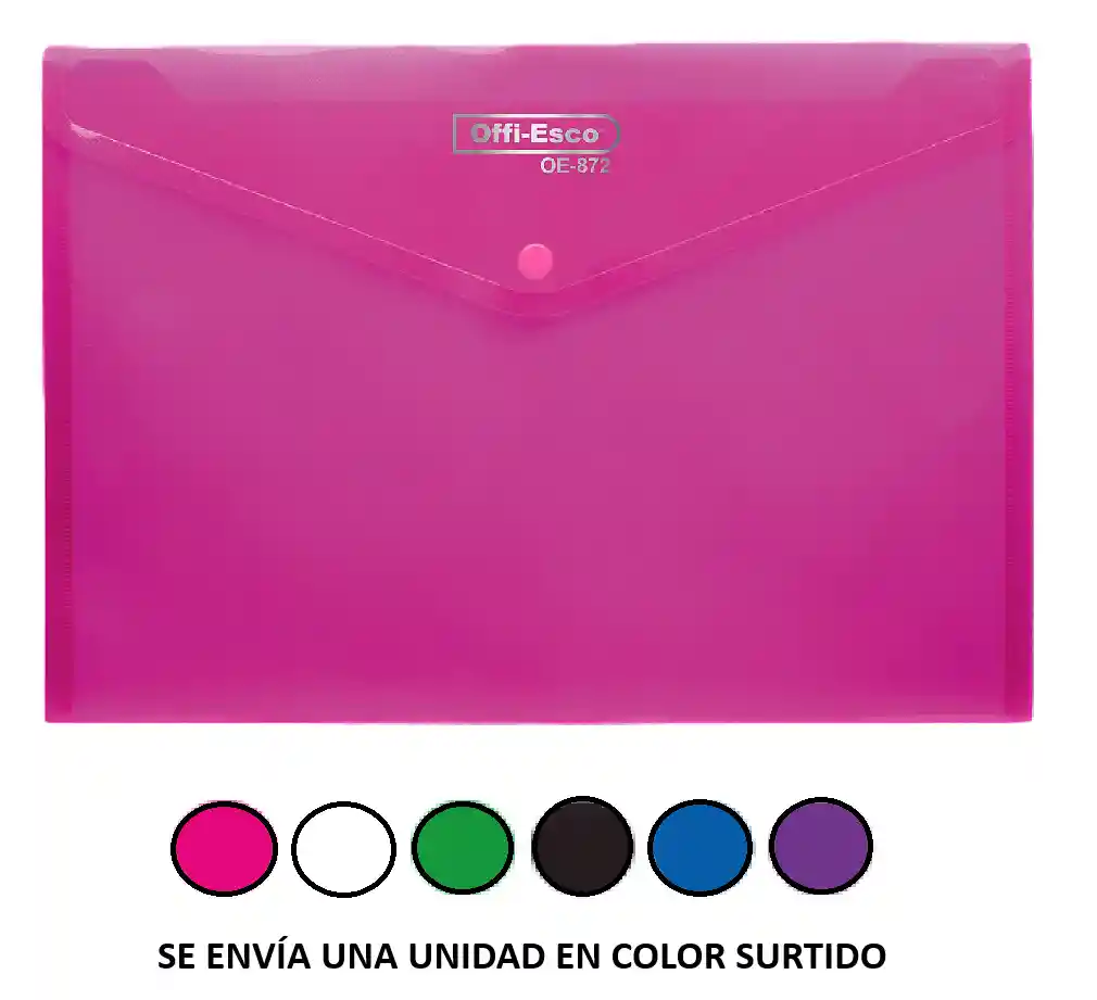 Carpeta Sobre plastico con cierra tipo broche horizontal marca Offi-Esco Referencia OE-872 Ideal para que almacenes documentos, ampliamente usado para guardar papeles y poder salir a atender un evento, practico de cargar, ligero, evita que se mojen los documentos