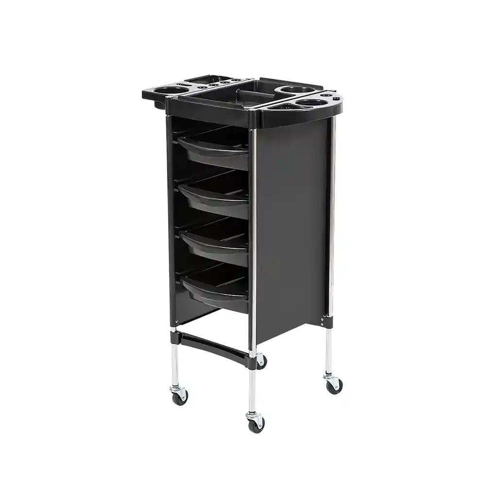 El Carrito auxiliar es una perfecta opción para tu negocio, posee una altura adecuada brindando una mejor comodidad a la hora de estar trabajando teniendo tus artículos y accesorios de forma organizada fácilmente a la mano, cuenta con 1 charola con bandejas plegables con diferentes tipos de apartados, 4 amplios cajones y 2 pardes laterales, fábricados en un resistente material de PP. Estructura de tubos de hierro que garantizan gran solidez y resistencia, diseño de rueda con rotación de 360º para moverlo con fácilidad. DIMENSIONES DEL PRODUCTO ANCHO 36 cm, ANCHO CHAROLA DESPLEGADA 52 cm, ALTO 83 cm, LARGO 37 cm y PESO 4 kg DIMENSIONES DEL EMPAQUE ANCHO 81 cm ALTO 39 cm LARGO 14 cm PESO 5 kg CONTENIDO · 1 Carrito organizador. CARACTERÍSTICAS TÉCNICAS · Charola con bandejas plegables. · 4 Cajones amplios. · Estructura de metal. · Ruedas giratorias BENEFICIOS · Fácil de mover. · Tendrás tus artículos de trabajo a la mano . Amplio espacio para guardar tus artículos MATERIALES · Plástico PP. · Hierro.