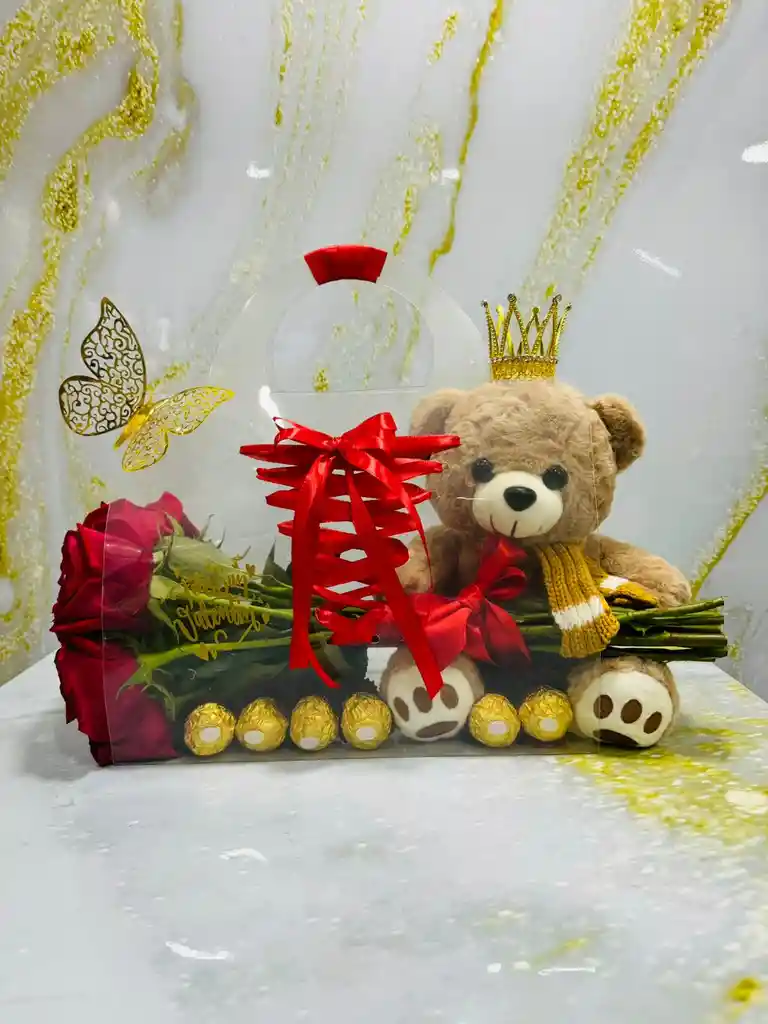 Cartera deluxe rosas, peluche pequeño diseño segun disponibilidad ferrero x 6