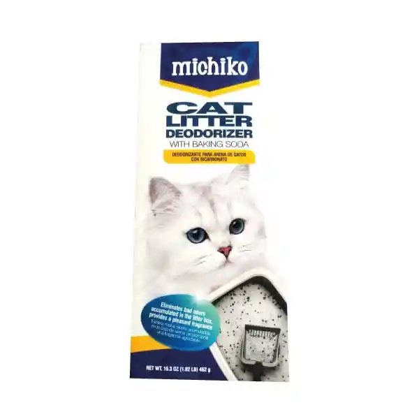 ¡Adiós Malos Olores! Potente Desodorante para la caja de arena de gatos, formulado con Bicarbonato. Elimina los olores acumulados y deja una fragancia agradable. Peso Neto: 462 g (16.3 oz).