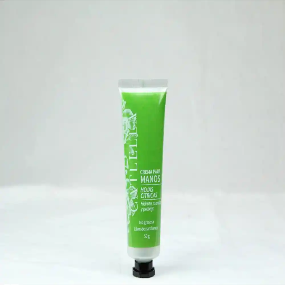 Crema para manos con hojas cítricas hidrata suaviza y protege. Fórmula no grasosa libre de parabenos. Packing: Pote