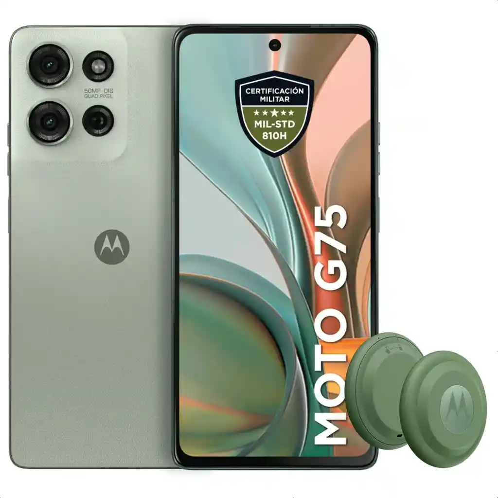 Celular Motorola Moto G75 5G Dual Sim, 256GB 8GB, 6.78" ***DUAL SIM = 1 SIMCARD FISICA (pSIM)Y 1 SIM VIRTUAL (eSIM)*** Estilo y durabilidad garantizados No hace falta que pierdas estilo si eliges un teléfono duradero. El moto g75 está diseñado para cumplir con los estándares militares (MIL-STD-810H) de durabilidad y tiene un estilo único. Disfruta de la tranquilidad que te brinda la protección IP68 contra el agua. El vidrio Corning® Gorilla Glass 5 te ofrece la tranquilidad que buscabas. Nitidez en tus tomas Captura fotos y graba videos nítidos en condiciones de poca luz gracias al sistema de cámaras avanzado con 50 MP, estabilización óptica de imagen y tecnología Quad Pixel. Fotos nítidas y brillantes sin importar la hora del día La cámara principal con 50 MP tiene un potente sensor LYTIA 600 de Sony y la tecnología Quad Pixel, que ofrece una sensibilidad 4 veces mejor para tomar fotos más nítidas y vibrantes, tanto de día como de noche. Aléjate o acércate Un sensor avanzado que ofrece dos perspectivas espectaculares. El lente ultra gran angular captura lo que ven tus ojos con un área de visión más amplia en comparación con lentes convencionales. El lente con Visión Macro te acerca 4 veces más a tu objetivo para que puedas ver los pequeños detalles. Elimina las franjas El nuevo sensor integrado elimina esas molestas franjas que suelen aparecer en fotos con iluminación LED y otras fuentes de luz artificial. De esta manera, siempre obtendrás imágenes vibrantes y detalladas. Fotos perfectas para las redes Captura selfies nítidas y brillantes gracias a la cámara frontal con 16 MP. Además, puedes usar Retoque facial, que mejora tus fotos automáticamente para que tú y tus amigos siempre salgan bien. undefined Desempeño superior Aprovecha tu teléfono al máximo gracias a la frecuencia de actualización de 120 Hz. Cambia de aplicaciones, juega y mira sitios web de forma rápida y fluida. Sonido envolvente Siente el sonido multidimensional que ofrece Dolby Atmos®. Escucha con mejores graves, mayor claridad y voces más nítidas en altavoces estéreo grandes. Descubre la tecnología más reciente de Snapdragon® antes que los demás Sé de las primeras personas en disfrutar del nuevo procesador Qualcomm® Snapdragon® 6 Gen 3, que te brinda un desempeño veloz y eficiente. Siente la diferencia en el desempeño del teléfono en tus actividades cotidianas, ya sea que juegues tus videojuegos favoritos, tomes fotos o grabes videos. Además, aprovecha al máximo las nuevas funciones con AI y la conectividad 5G ultrarrápida. Realiza varias tareas sin esfuerzo A veces, necesitas realizar más de una tarea a la vez en tu teléfono. RAM Boost convierte temporalmente el almacenamiento en RAM virtual, lo que te permite cambiar de aplicaciones sin problemas. La función RAM Boost está activada de forma predeterminada y el teléfono se adapta automáticamente. De esta manera, se agrega más memoria RAM cuando sea necesario. Permanece siempre al día Tu smartphone estará actualizado con la versión más reciente de Android gracias a las cinco actualizaciones de sistema operativo garantizadas y las actualizaciones de seguridad (durante 6 años). De este modo, obtendrás las últimas innovaciones para que tu teléfono funcione de forma segura y sin problemas. Increíble duración de la batería 36 horas de batería Quedarte sin batería es cosa del pasado. La increíble batería de 5,000 mAh te permite escuchar tus listas de reproducción durante más tiempo, realizar videollamadas extensas con amigos y ver tus series favoritas hasta el final. A nadie le gusta estresarse por tener batería baja, especialmente antes de una salida nocturna importante o de un largo día en el trabajo. Con la carga TurboPower 30, obtén un 50% de batería en menos de 25 minutos de carga, y libérate de preocupaciones. Guárdalo todo Ya no dudes cuando quieras guardar algo. Gracias al almacenamiento de 256 GB, tendrás mucho espacio para fotos, películas, canciones, aplicaciones y juegos. Además, puedes agregar hasta 1 TB adicional con una tarjeta microSD. ESPECIFICACIONES Rendimiento Sistema Operativo: Android 14.0 (U) Memoria RAM: 8 GB física + 8 GB de RAM Boost con elección automática a través de IA Procesador: Qualcomm Snapdragon 6 Gen 3 / 4 x A78 @ 2.2 GHz, 3 x A55 @ 1.8 GHz Almacenamiento interno: 256 GB Batería Tamaño de batería: 5000 mAh Tipo de batería: Li-Poly (Interna) Pantalla Tamaño de pantalla: 6.78" Resolución: 2388x1080, 120Hz Tecnología de la pantalla: LCD Diseño Dimensiones: 77.10 mm x 165.95 mm x 8.04 mm Protección vs agua: Sí / Sumerción en agua dulce de 1.5m (IPX IP68) Certificación MIL810 Peso: 195 g Cámara Cámara frontal (Selfie): 16 MP Cámara trasera: 50 MP + 8 MP + Flicker Sensor Audio Sistema de Audio: Dolby Atmos Conector de audífonos alámbricos: No Conectividad Bluetooth: Sí, BT 5.4 NFC: Sí Wi-Fi: WiFi 2.4G, WiFi 5G / 802.11 a/b/g/n/ac Servicios de ubicación: GPS Tarjeta SIM Doble SIM: (Nano SIM (4FF) y eSIM) Redes 2G, 3G, 4G, 5G Experiencias Control por voz: Sí Contenido de la caja Contenido de la caja: Manual de usuario, cable de sincronización, cargador para viaje, herramienta de remoción de tarjeta SIM, funda protectora de plástico, teléfono (batería incluida no extraíble). + Moto Tag Encuentra cualquier cosa en cualquier lugar Con una red global de más de mil millones de dispositivos Android, puedes buscar tus pertenencias sin importar dónde estén gracias a Encontrar mi dispositivo de Google Busca cualquier cosa, desde objetos pequeños hasta gigantes Encuentra las llaves del auto que perdiste en tu casa, una mochila que dejaste en el parque o incluso una valija que terminó en la otra punta del mundo. El moto tag te ayuda a encontrar tus pertenencias para que tu vida cotidiana sea más sencilla. Un aliado infalible El proceso de ajustes es simple. Para sincronizarlo con tu teléfono Android, enciende el moto tag cerca de tu