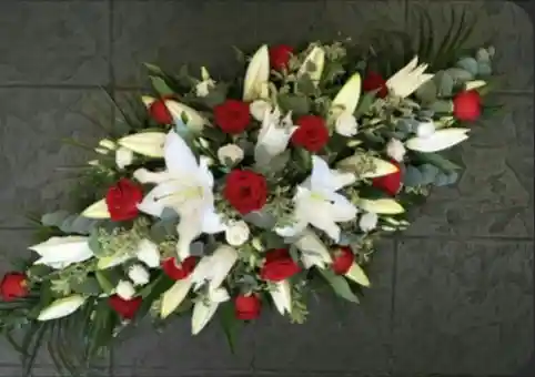 Arreglo con lirios, aves del paraíso, ópalos, cardos, gerberas, margaritas, siempre viva, clavel chino, anturios y base de madera