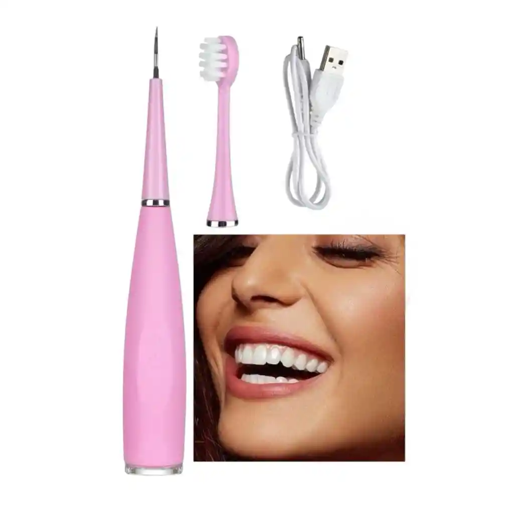 Removedor de sarro dental ultrasónico de alta calidad, quita manchas, sarro y mal aliento. Con hasta 12.000 vibraciones por minuto, Electric Cleaner elimina las manchas dentales sin esfuerzo y rápidamente, incluso en las áreas más difíciles de alcanzar, anímate a tener dientes y encías saludables. Con nivel médico de acero aleado y silicona de calidad, el removedor de sarro es mucho más seguro que otros tipos de herramientas de limpieza dental. Usarlo al menos 2 veces al mes podría ser útil para evitar el dolor de dientes y las enfermedades de las encías. Disponibles en color rosa