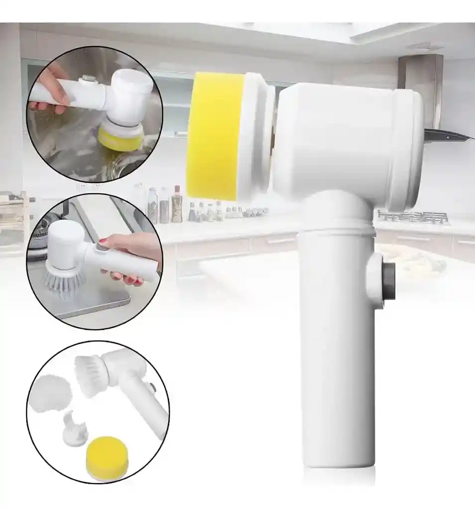 Cepillo Limpieza Eléctrico Inalámbrico Magic Brush 5 En 1. CARACTERISTICAS: * Cepillo Limpieza Eléctrico Inalámbrico, recargable por USB. * 3 Cabezas de cepillos intercambiables: Un cabezal de esponja suave, Un cepillo de nailon duro, El cepillo de poliéster. * Potente limpieza en cualquier lugar como pisos, cerámicas, cocinas, ventanas, baños. * Cepillo motorizado que tiene la capacidad de rotar, para facilitar la limpieza. * Cómodo y fácil de usar de agarre antideslizante. * Viene Con un gancho se puede colgar en la pared cuando no está en uso. DESCRIPCION: - El cepillo Magic Brush 5 en 1 , es un potente aliado para la limpieza del hogar que esta equipado con tres cepillos, que cubrirán todas las necesidades de limpieza. * Cepillo de Nailon: Para restos de suciedad en los azulejos del baño, tinas, lavamanos y mas. * Cepillo de esponja; Para lavaplatos de acero inoxidable o para superficies lisas. * Cepillo de Poliéster: Para dar brillo en cerámicas, también para limpiar alfombras, cueros, etc. ESPECIFICACIONES: * Material: ABS Nylon. * Color: blanco * Tamaño del artículo: 19 x 11,5 cm, 7,48 x 4,53 cm * Contiene: 1 manilla de limpieza, 1 cepillo de esponja, 1 cepillo de nailon, 1 cepillo de poliéster, 1 gancho, doble cara. Cinta. * Recargable por USB.