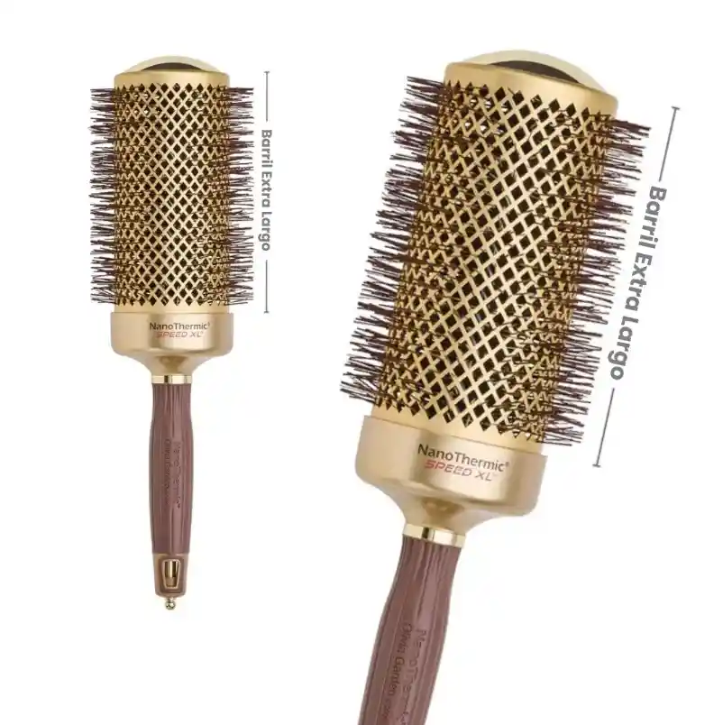 Cepillo Térmico Redondo Extra Largo NT-64 Speed XL con un barril más largo para peinar secciones más grandes de cabello y revestido de cerámica el cual logra que se caliente mas rápido y retenga el calor por más tiempo para lograr peinados más rápidos y duraderos. Peina secciones más grandes de cabello. Consigue el secado perfecto. Nuevo Turbo Barril Ventilaciones extra grandes: mayor flujo de aire que reduce el tiempo de secado. Tecnología de iones de turmalina Hidrata la cutícula Agrega más brillo al cabello Elimina el frizz y los cabellos sueltos Anti-Estático Diseño de cerdas único Cerdas especiales onduladas resistentes al calor Punta suave: suave para el cabello y el cuero cabelludo Diseño de mango único Anillo sin enganches Mango ergonómico de fácil agarre Ligero para un estilo sin esfuerzo Pico de seccionamiento retráctil