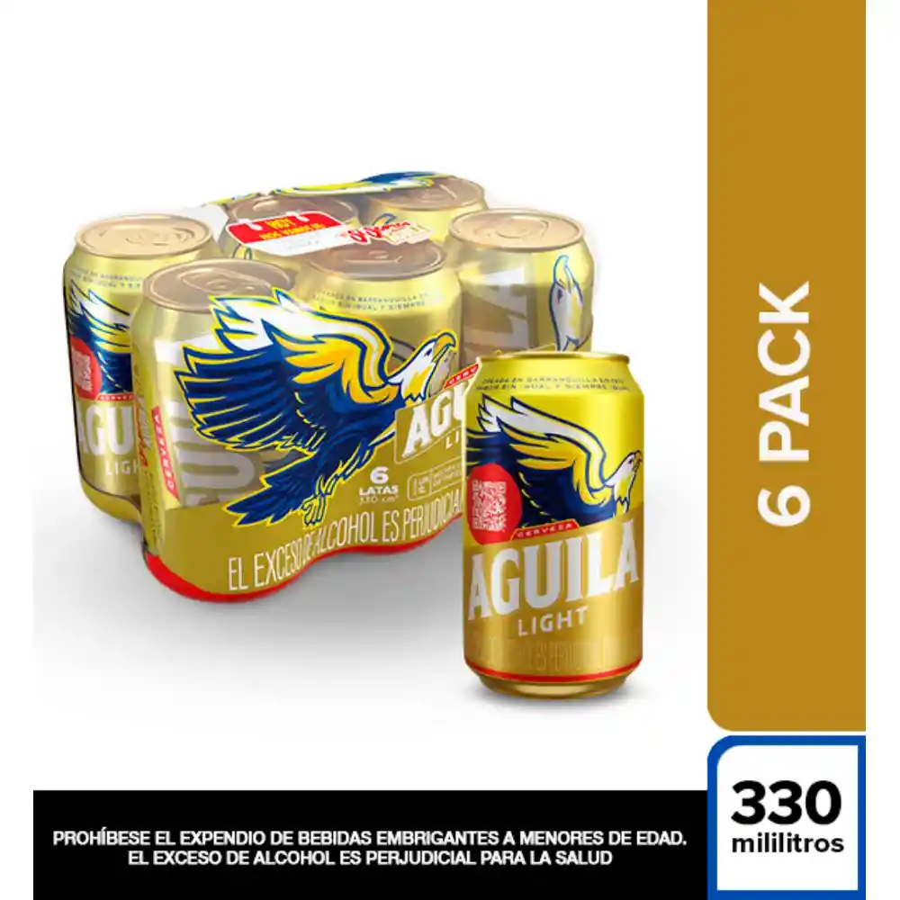 Cerveza Águila Light Lata 330 Ml X6 Unds - Los licores nacionales e importados no tienen cambio. - En los lugares donde sea decretada ley seca se despachará licor una vez se levante la medida y la entrega se hará de acuerdo a la política de entrega establecida - El exceso de alcohol es perjudicial para la salud. Ley 30 de 1986. Prohíbase el expendio de bebidas embriagantes a menores de edad. Ley 124 de 1994.
