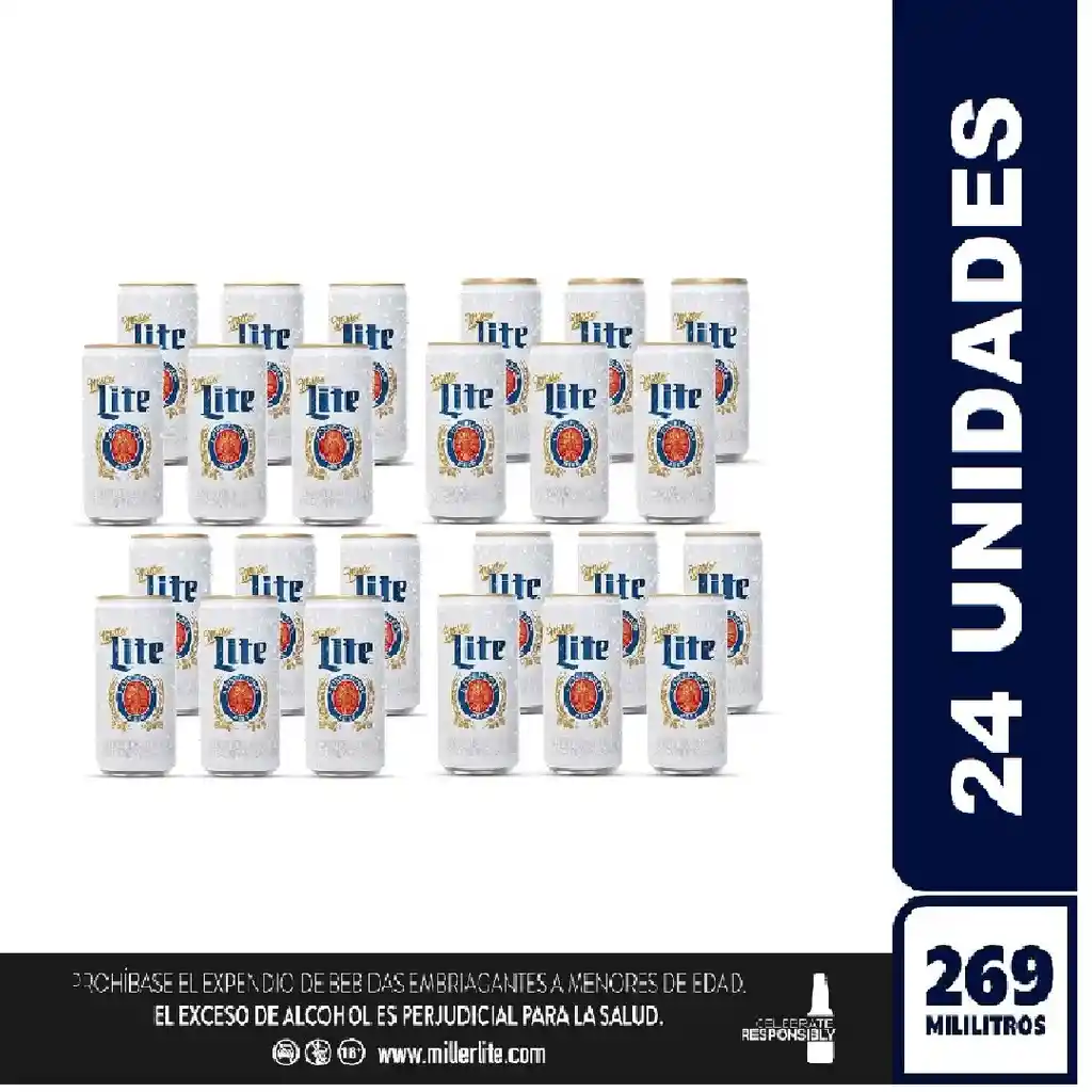 CAJA CERVEZA MILLER LITE X 24 UNIDADES DE 269ML