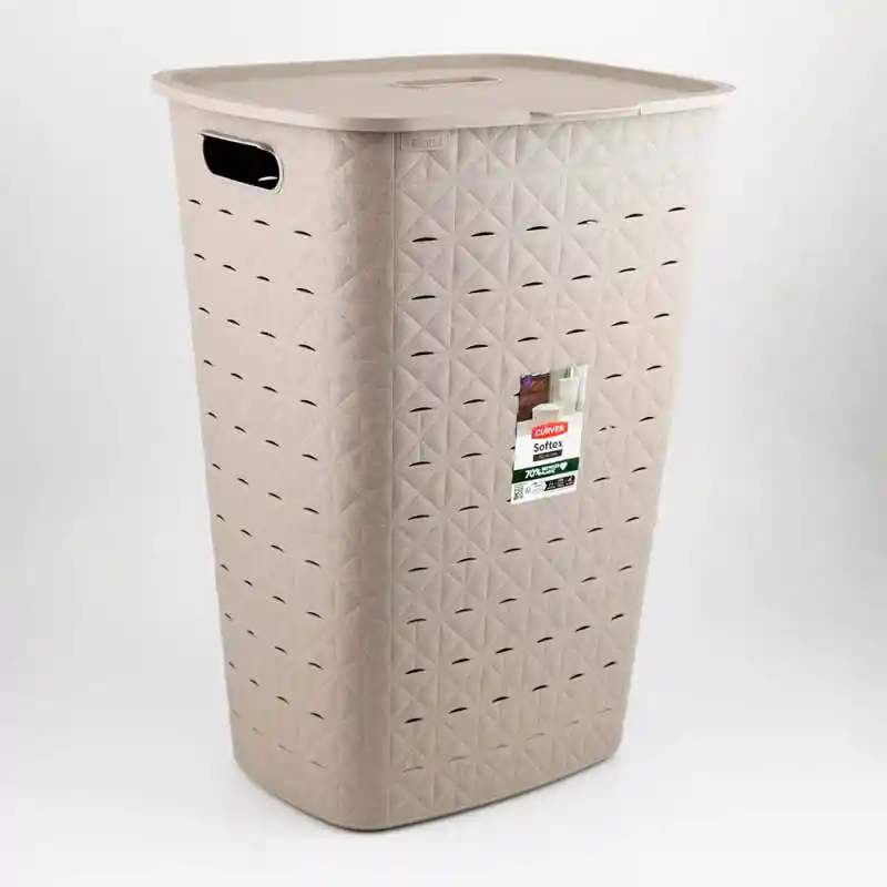 Cesta Curver Softex taupe 56 L, práctica y elegante.