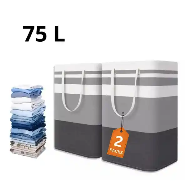 Cesto Grande Para Ropa Sucia Y Lavanderia Plegable Set X2 75Litros Gris ¡Optimiza tu espacio de lavandería con el Cesto Grande Plegable! Este práctico set x2 de 75 litros en color gris es perfecto para mantener tu ropa sucia organizada. Su diseño clásico y plegable te permite ahorrar espacio cuando no está en uso. ¡Haz que el día de lavado sea más fácil y eficiente!