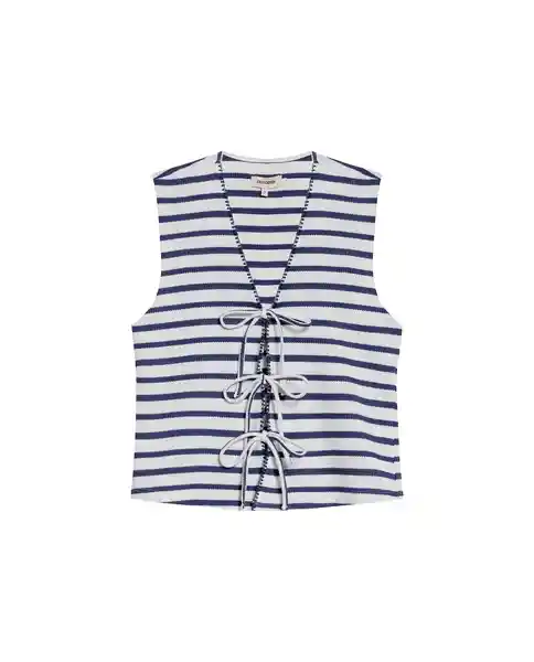 Talla M Para Mujer Sin Mangas Silueta Recta Favorecedora Escote en V Con Puntada Decorativa Que Añade Detalle Sutil Tiras Frontales Para Anudar Que Permiten Personalizar Fit Según Look. Simulación de Tejido de Rayas Que Proporciona Textura Visual Interesante. Perfecta Para Capas o Uso Individual en Días Calurosos. Ean- 719G034Azu193924 Plu- 1111133164145.