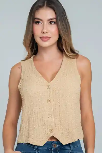 En Tejido Especial Escote en V Manga Sisa Con Botones de Ajuste en Frente Tono a Tono Espalda Lisa Silueta Semi Ajustada.