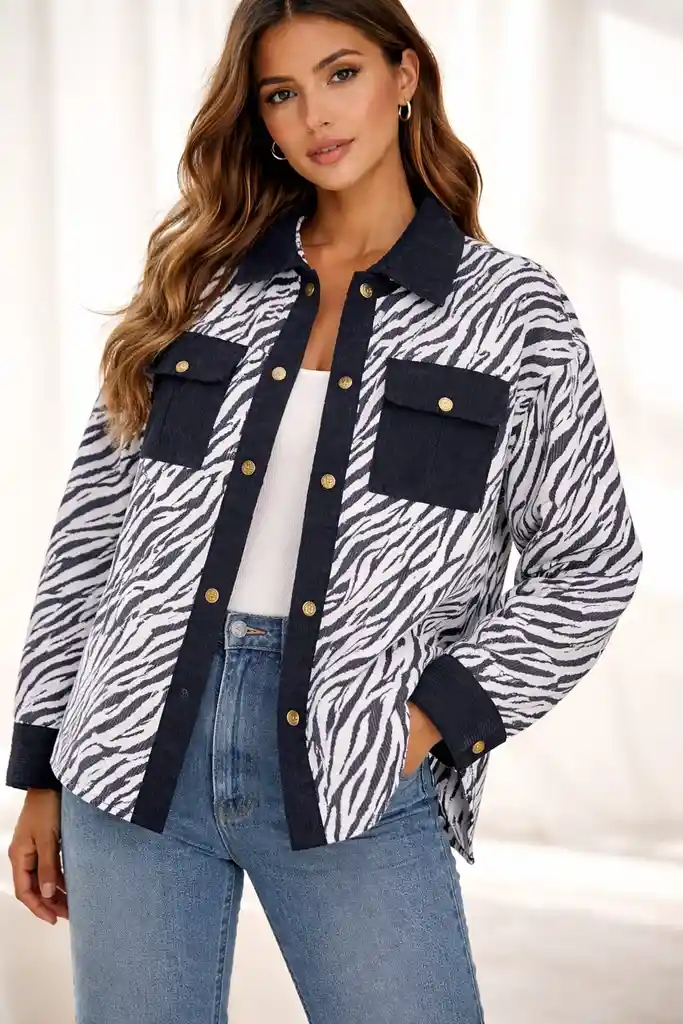 Chaqueta femenina de diseño utilitario con silueta estructurada y corte moderno. Cuenta con cierre frontal de botones, bolsillos funcionales con tapa y cuello clásico que aporta un estilo versátil y atemporal. Ideal para looks casuales o urbanos, combina comodidad y resistencia en una prenda práctica, perfecta para complementar outfits diarios con un toque contemporáneo y funcional.