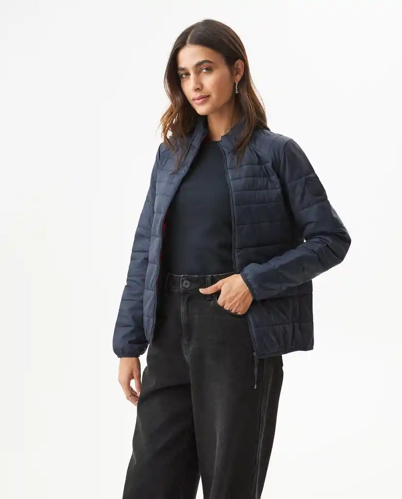 Talla S. Chaqueta de mujer acolchada ultraligera y plegable con portabilidad inteligente. Tejido resistente al agua que evita la penetración de la humedad. Cuello alto, puños y dobladillo elásticos que retienen el calor sin añadir volumen. Diseño comprimible y fácil de guardar, ideal para viajes y actividades al aire libre. Combínala con jeans y tenis para un look casual o úsala sobre suéteres en los desplazamientos diarios.