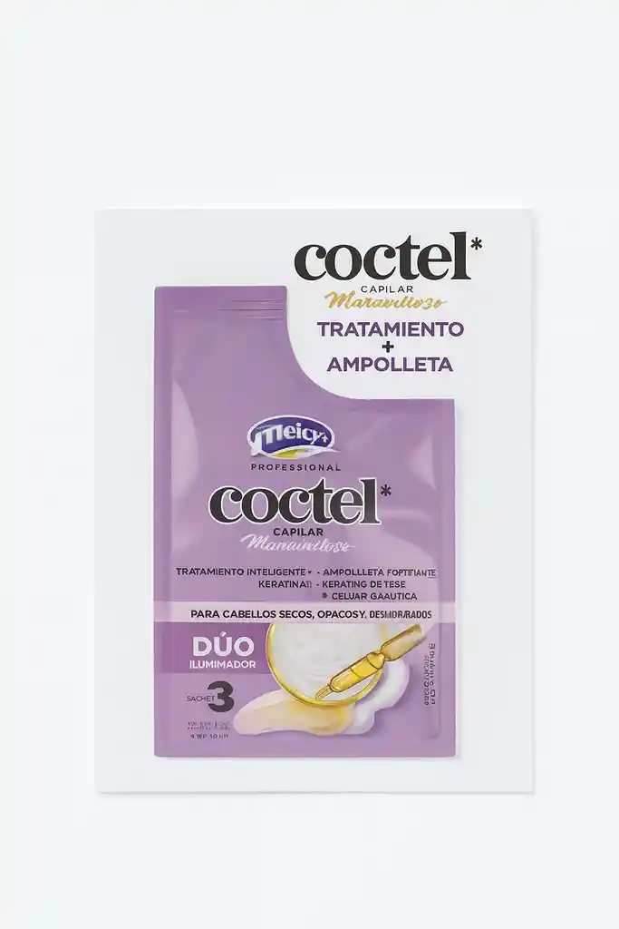 💜 Coctel Capilar Maravilloso Meicy’s – Tratamiento + Ampolleta 2 en 1 ✨ Descripción: El Coctel Capilar Maravilloso de Meicy’s Professional es un tratamiento inteligente 2 en 1 que combina keratina con una ampolleta fortificante de semillas de lino y centella asiática 🌿. Repara, nutre y devuelve el brillo al cabello seco, opaco y deshidratado 💆♀️. 🌸 Beneficios: 💧 Hidrata profundamente y suaviza el cabello. 💪 Fortalece desde la raíz gracias a su fórmula con keratina. 🌿 Nutre y revitaliza con extractos naturales. ✨ Aporta brillo y luminosidad al instante. 🕒 Actúa en solo 3 minutos. 💆♀️ Modo de uso: 1️⃣ Lava tu cabello como de costumbre. 2️⃣ Aplica el contenido del sachet (tratamiento + ampolleta) sobre el cabello húmedo. 3️⃣ Deja actuar por 3 a 5 minutos. 4️⃣ Enjuaga con abundante agua. 📦 Presentación: Sachet 2 en 1 (Tratamiento + Ampolleta incluida en el masaje ) 💜 Ideal para cabellos secos, dañados o sin brillo. Uso profesional y doméstico.