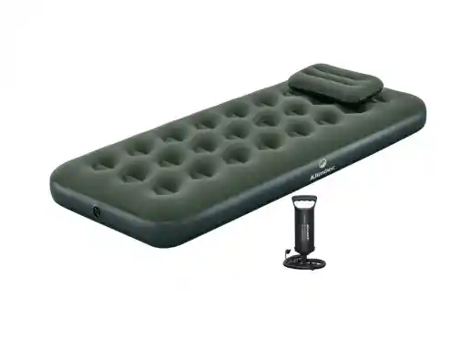 Colchón Inflable Individual + Almohada + Bomba Klimber 🛏️⛺✨ Disfruta de comodidad en cualquier lugar con este práctico colchón inflable individual Klimber. Perfecto para camping, viajes, visitas o uso en casa, incluye almohada y bomba para un inflado rápido y fácil. Características destacadas: 📏 Medidas: 135 cm largo x 76 cm ancho x 22 cm alto. ⚖️ Resistencia: Soporta hasta 227 kg. 🛏️ Incluye almohada para mayor comodidad. 🔄 Bomba para inflado rápido y sencillo. 🏕️ Ideal para camping, viajes o invitados. 🛠️ Material resistente y duradero. ¡Lleva la comodidad contigo a donde vayas y descansa como en casa! 😴✨