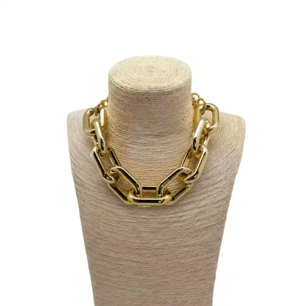 Descubre el encanto audaz del Collar "Eslabón de Oro". Su diseño con eslabones grandes, le da un toque moderno y atemporal a cualquier atuendo. Es el accesorio perfecto para un look único y chic que te hará destacar en cualquier ocasión.