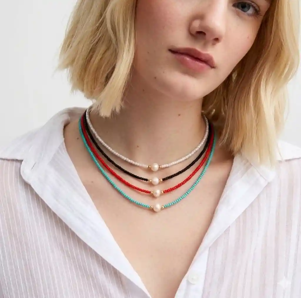 Diseño delicado y minimalista que combina la sutileza de las mostacillas con lDiseñoa elegancia natural de una perla de agua dulce central. Es ligero, versátil y sofisticado, ideal para realzar cualquier look, desde el más casual hasta uno más elegante, aportando un toque fresco y atemporal.