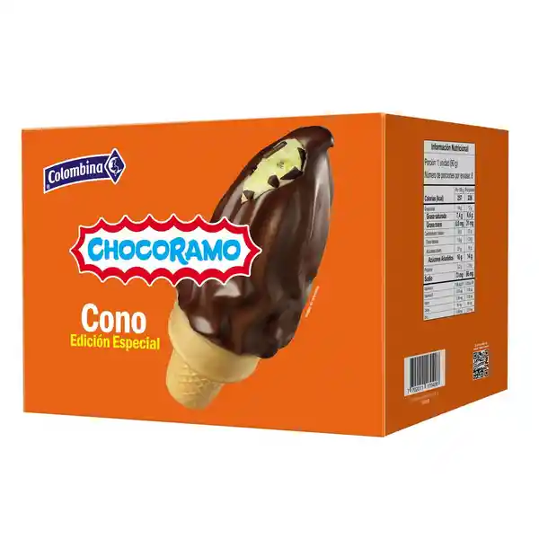 Caja Con 8 Unidades de 90 g c/u. Este Cono Combina el Sabor Inconfundible Del Tradicional Chocorramo Con la Te...Ver más