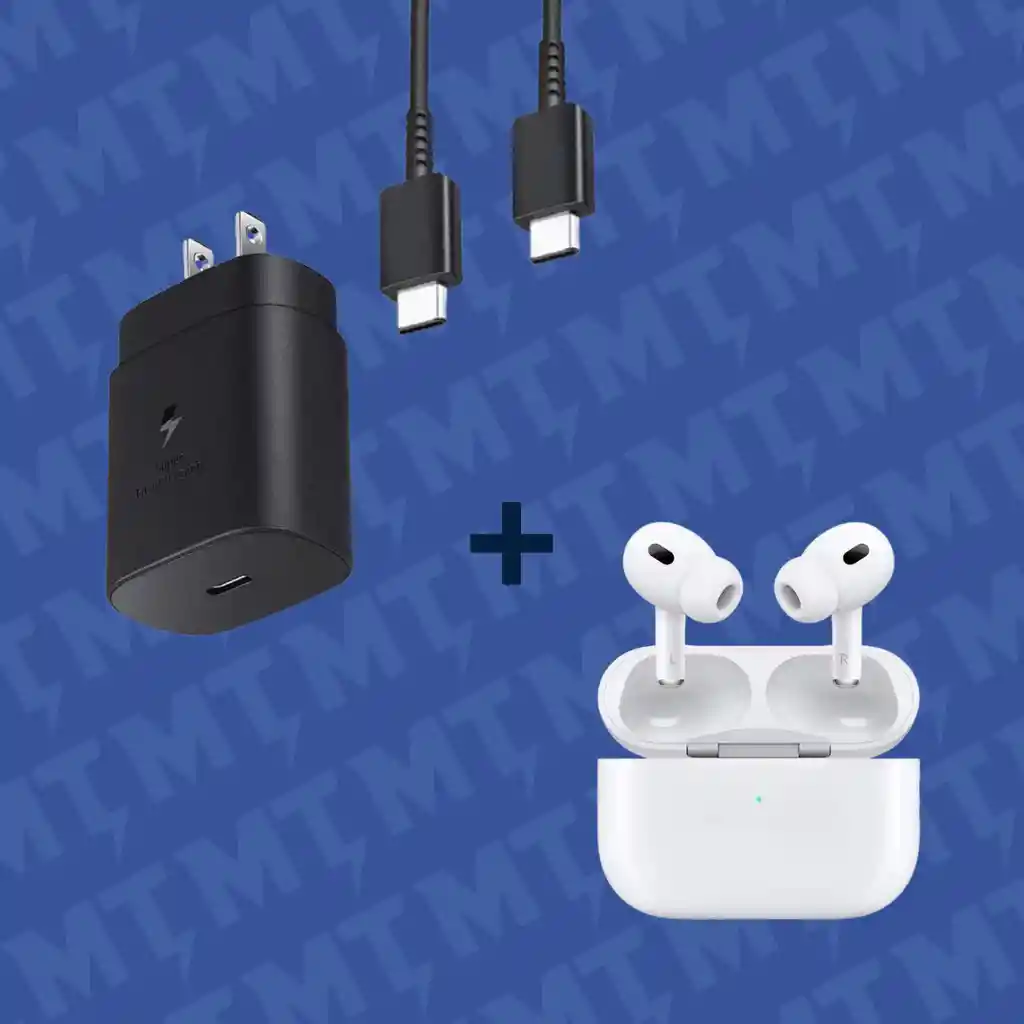 El combo ideal para el día a día. Incluye cargador rápido de 25W para mantener tu Samsung siempre con energía y AirPods Pro 2 para disfrutar música, llamadas y contenido con excelente calidad de sonido. Práctico, moderno y pensado para acompañarte en todo momento. Incluye: -Cargador 25W (Calidad Estándar). -AirPods Pro 2 (Calidad certificada).