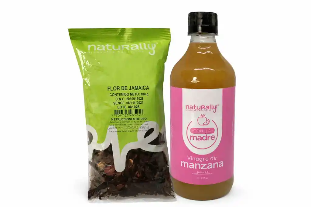 El Combo Detox Natural Naturally combina dos potentes aliados de origen vegetal diseñados para apoyar la desintoxicación del organismo, mejorar la digestión y favorecer un metabolismo saludable de forma natural. Incluye Vinagre de Manzana con la Madre Naturally 500 ml, sin filtrar ni pasteurizar, rico en enzimas, probióticos y minerales que ayudan a equilibrar la flora intestinal, regular el azúcar en la sangre y apoyar el control de peso. Se complementa con Flor de Jamaica Naturally 100 g, una infusión antioxidante y diurética que contribuye a la limpieza del hígado y los riñones, ayuda a controlar el colesterol, la presión arterial y favorece la eliminación de líquidos y toxinas. Este combo es ideal para personas que buscan bienestar integral, digestión ligera, apoyo en planes detox y hábitos saludables diarios. Beneficios del combo: • Apoya la desintoxicación natural del cuerpo. • Mejora la digestión y la salud intestinal. • Favorece el control de peso y el metabolismo. • Ayuda a regular colesterol, triglicéridos y glucosa. • Efecto diurético y antioxidante. • Contribuye al bienestar de la piel y el sistema inmunológico. Contenido del combo: • Vinagre de Manzana con la Madre Naturally 500 ml. • Flor de Jamaica Naturally 100 g. Modo de uso recomendado: • Vinagre de manzana: Mezclar 1 cucharada en un vaso de agua (200 ml) y tomar antes de las comidas. • Flor de Jamaica: Preparar infusión con 2 cucharadas por litro de agua. Consumir de 3 a 4 tazas al día. Productos 100 % naturales, libres de conservantes y aditivos artificiales. Ideal para consumo diario dentro de una rutina de bienestar natural. Registros Invima: •Vinagre de manzana: Invima NSA-0011439-2021 •Flor de Jamaica: Invima C.N.O. 2010015028
