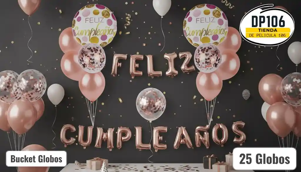 15 globos R16 F-E-L-I-Z C-U-M-P-L-E-A-Ñ-O-S . Palorosa 6 globos R12 satinados Palorosa 2 Globos de confettis R12 2 Globos R18 , de feliz cumpleaños