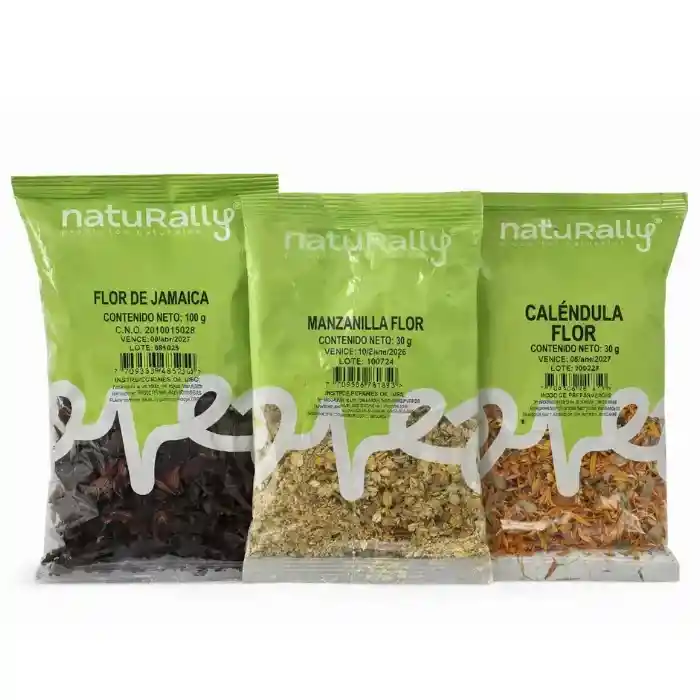 El Combo de Infusiones Naturally Antiinflamatorio y Relajante está diseñado para apoyar el bienestar integral del cuerpo mediante el uso de plantas medicinales tradicionalmente reconocidas por sus efectos calmantes, digestivos y antiinflamatorios. La combinación de Flor de Jamaica, Manzanilla y Caléndula favorece la relajación física y mental, ayuda a reducir inflamaciones leves, mejora la digestión y promueve una sensación general de equilibrio y descanso. Es ideal para personas que buscan alternativas naturales para aliviar el estrés, molestias digestivas o tensión corporal. BENEFICIOS PRINCIPALES DEL COMBO • Contribuye a la reducción de inflamación leve. • Favorece la relajación y el descanso natural. • Apoya el sistema digestivo y reduce molestias estomacales. • Ayuda a calmar cólicos intestinales y menstruales. • Aporta antioxidantes naturales. • Ideal para consumo nocturno o en momentos de estrés. CONTENIDO DEL COMBO Y MODO DE PREPARACIÓN -Flor de Jamaica Naturally 100 g: Planta rica en antioxidantes naturales, reconocida por su acción antiinflamatoria y depurativa, que contribuye al bienestar general y a la eliminación de líquidos. Modo de preparación: Hervir 1 litro de agua. Al iniciar la ebullición, apagar el fuego y añadir 2 cucharadas de flor de Jamaica. Tapar, dejar reposar 10 minutos y colar. Consumir de 1 a 3 tazas al día, preferiblemente en horas de la mañana o tarde. -Manzanilla Flor Naturally 30 g: Flor ampliamente utilizada por sus propiedades calmantes, digestivas y antiinflamatorias. Ideal para reducir tensión, aliviar el malestar estomacal y favorecer la relajación. Modo de preparación: Agregar 1 cucharada de flor de manzanilla en 1 litro de agua caliente. Tapar, dejar reposar 10 minutos y colar. Consumir después de las comidas o en la noche para promover la relajación. -Caléndula Flor Naturally 30 g: Planta tradicionalmente reconocida por sus propiedades calmantes, antisépticas y antiinflamatorias. Apoya el bienestar digestivo y brinda una infusión reconfortante. Modo de preparación: Añadir 1 cucharada de flor de caléndula a 1 taza de agua caliente. Tapar, dejar reposar 5 minutos y colar. Consumir 1 o 2 veces al día, preferiblemente en la noche o antes de dormir. CARACTERÍSTICAS DEL PRODUCTO • Plantas 100% naturales deshidratadas. • Libres de colorantes, conservantes y saborizantes artificiales. • Apto para infusión caliente o fría. • Empaque sellado y práctico. • Producto de origen vegetal. REGISTROS INVIMA • Flor de Jamaica Naturally 100 g Registro Invima: C.N.O. 2010015028 • Manzanilla Flor Naturally 30 g Registro Sanitario: NSA-0008613-2020 • Caléndula Flor Naturally 30 g Registro Invima: C.N.O. 2010015028