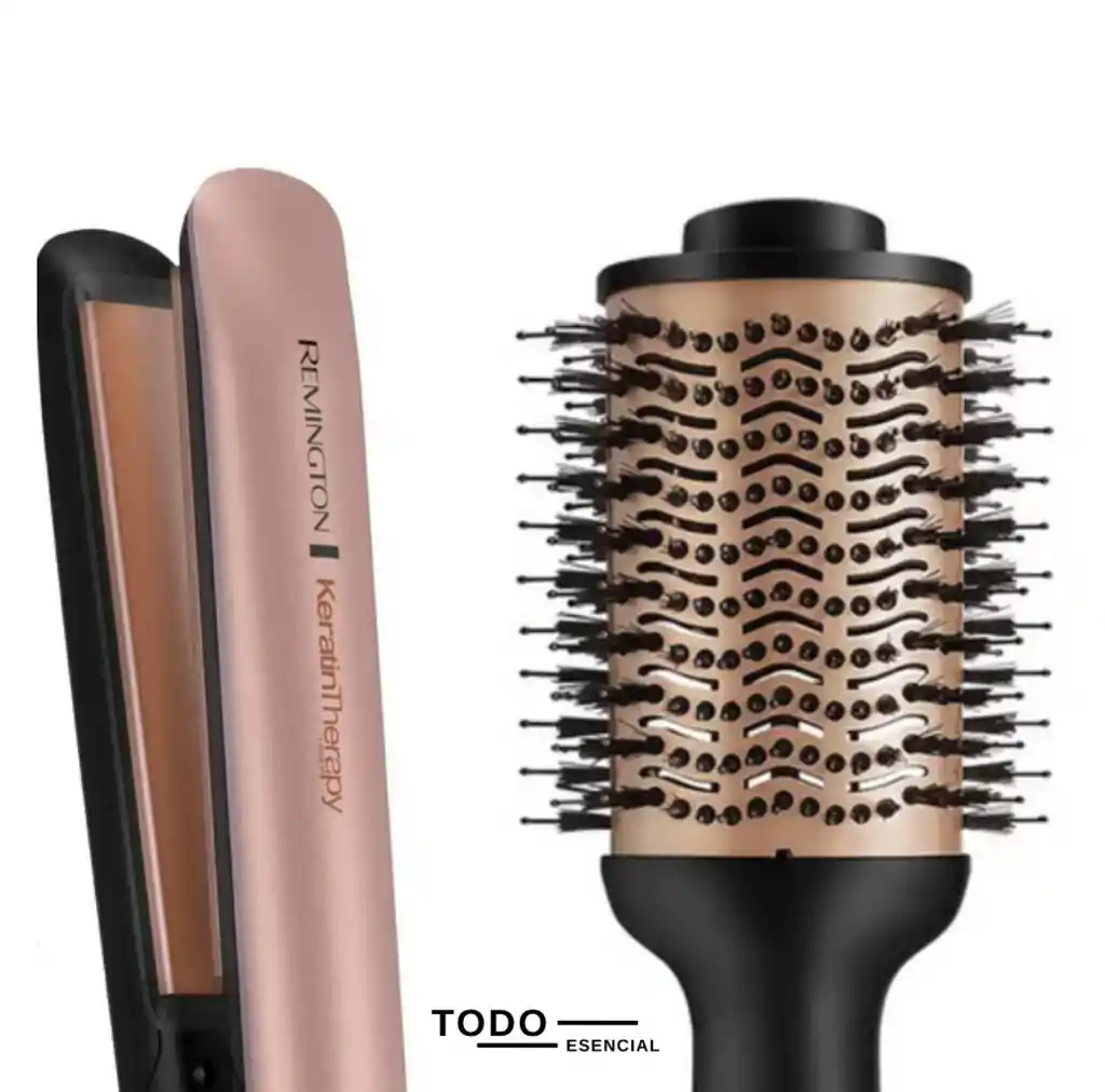 Combo Kit Remnlignton Keratina – Alisado y Volumen con Cuidado Nutritivo Consigue un cabello liso, con volumen y lleno de vida con el Combo Kit Remington Keratina, que incluye una plancha alisadora y un cepillo encrespado, diseñados para proteger y nutrir tu cabello mientras lo estilizas. Gracias a la infusión de queratina, aguacate y macadamia, este kit es ideal para quienes buscan un peinado impecable sin sacrificar la salud de su cabello. 🌿 Plancha Alisadora con Queratina, Aguacate y Macadamia Con placas de cerámica de alta calidad, esta plancha logra un alisado perfecto y duradero, reduciendo el frizz y dejando el cabello suave y brillante. Su tecnología de infusión de aceites nutritivos protege la fibra capilar, brindando un acabado saludable y sedoso. 💫 Cepillo Encrespador – Volumen y Movimiento Natural Este cepillo encrespado es la herramienta ideal para dar volumen, ondas suaves o peinados con cuerpo sin esfuerzo. Sus cerdas diseñadas para distribuir el calor uniformemente permiten un estilizado rápido mientras cuidan el cabello. Gracias a la infusión de queratina, aguacate y macadamia, nutre la fibra capilar y reduce el daño por calor, dejando un acabado radiante. Ficha Técnica: ✔ Plancha con recubrimiento de queratina, aguacate y macadamia para un cabello más fuerte y saludable. ✔ Cepillo encrespado ideal para dar volumen y ondas con movimiento natural. ✔ Placas de cerámica en la plancha para un deslizamiento suave sin maltratar el cabello. ✔ Cable giratorio de 360° para mayor comodidad y facilidad de uso. ✔ Diseño ergonómico y liviano, perfecto para el uso diario. Si buscas una combinación perfecta entre alisado, volumen y cuidado capilar, el Combo Kit Remington Keratina es tu mejor aliado. ¡Luce un cabello espectacular todos los días con protección y estilo! ✨