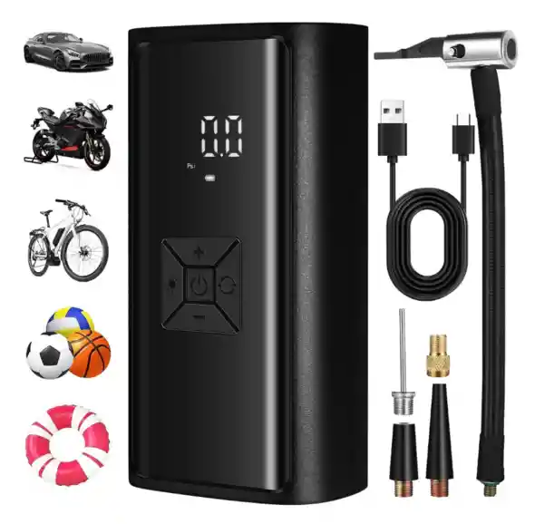 El compresor de aire portátil 12V es una herramienta práctica y compacta diseñada para inflar neumáticos de autos, motos, bicicletas y balones de forma rápida y sencilla. Su pantalla digital LED permite visualizar la presión del aire con precisión, facilitando el control durante el proceso de inflado. Cuenta con un diseño portátil y fácil de transportar, ideal para llevar en el vehículo y utilizar en emergencias o mantenimiento diario. Su manguera flexible y diferentes adaptadores permiten inflar distintos tipos de válvulas con comodidad. Además, funciona mediante conexión de 12V para vehículo, lo que lo hace perfecto para usar en carretera o en casa cuando se necesita inflar neumáticos o accesorios inflables. Características principales: Modelo: C-12V Tipo: Compresor de aire portátil Alimentación: 12V (conector para vehículo) Pantalla digital LED para lectura de presión Inflado rápido y fácil Diseño compacto y portátil Incluye varios adaptadores para diferentes válvulas Ideal para autos, motos, bicicletas y balones Contenido del paquete: 1 Compresor de aire portátil 1 Cable de alimentación 12V Adaptadores para inflado 1 Manguera de aire