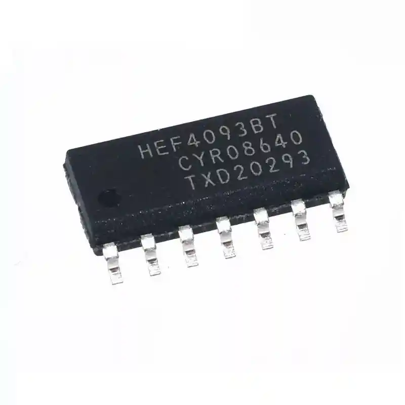El HEF4093B es una puerta NAND cuádruple de dos entradas. Cada entrada tiene un circuito disparador Schmitt. La puerta cambia en diferentes puntos para señales positivas y negativas. La diferencia entre el voltaje positivo (VT +) y el voltaje negativo (VT) se define como voltaje de histéresis (VH). Opera en un rango de fuente de alimentación VDD recomendado de 3 V a 15 V con referencia a VSS (generalmente tierra). Las entradas no utilizadas deben conectarse a VDD, VSS u otra entrada. 2. Características y beneficios Discriminación de entrada de disparador Schmitt Funcionamiento completamente estático Clasificaciones paramétricas de 5 V, 10 V y 15 V Características de salida simétricas estandarizadas Especificado de 40 C a +85 C y de 40 C a +125 C Cumple con el estándar JEDEC JESD 13-B 3. Aplicaciones Moldeadores de ondas y pulsos Multivibradores astables Multivibradores monoestables LA COMPRA INCLUYE: 1 x CIRCUITO INTEGRADO HEF4093BT smd
