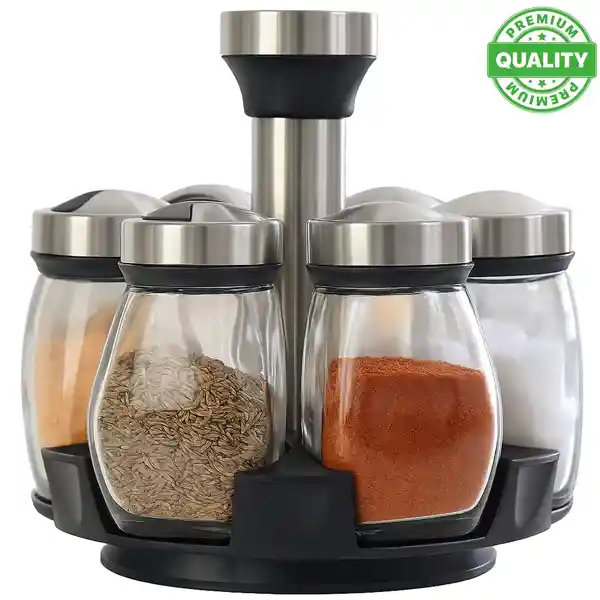 Especiero giratorio de lujo con frascos de vidrio y base giratoria 360 "Revoluciona el arte de sazonar con este Especiero Giratorio de Lujo" Olvídate del desorden y la búsqueda interminable de especias. Este especiero no es solo un organizador, es una pieza de diseño que combina funcionalidad y estilo, convirtiéndose en el centro de atención de tu encimera. Su base giratoria de 360° te permite acceder al condimento perfecto con un simple y suave giro, poniendo todos los sabores del mundo al alcance de tu mano. El diseño vertical y compacto optimiza el espacio de tu cocina, ideal tanto para chefs aficionados como para profesionales. Los frascos están fabricados en vidrio transparente de alta calidad, permitiendo identificar el contenido de un solo vistazo, desde el comino hasta el pimentón ahumado. Cada frasco se corona con una tapa de acero inoxidable que no solo aporta un toque moderno y sofisticado, sino que también garantiza un cierre hermético, conservando la frescura, el aroma y la potencia de tus especias por mucho más tiempo. Elegancia, orden y practicidad se unen en este accesorio indispensable que elevará tu experiencia culinaria.