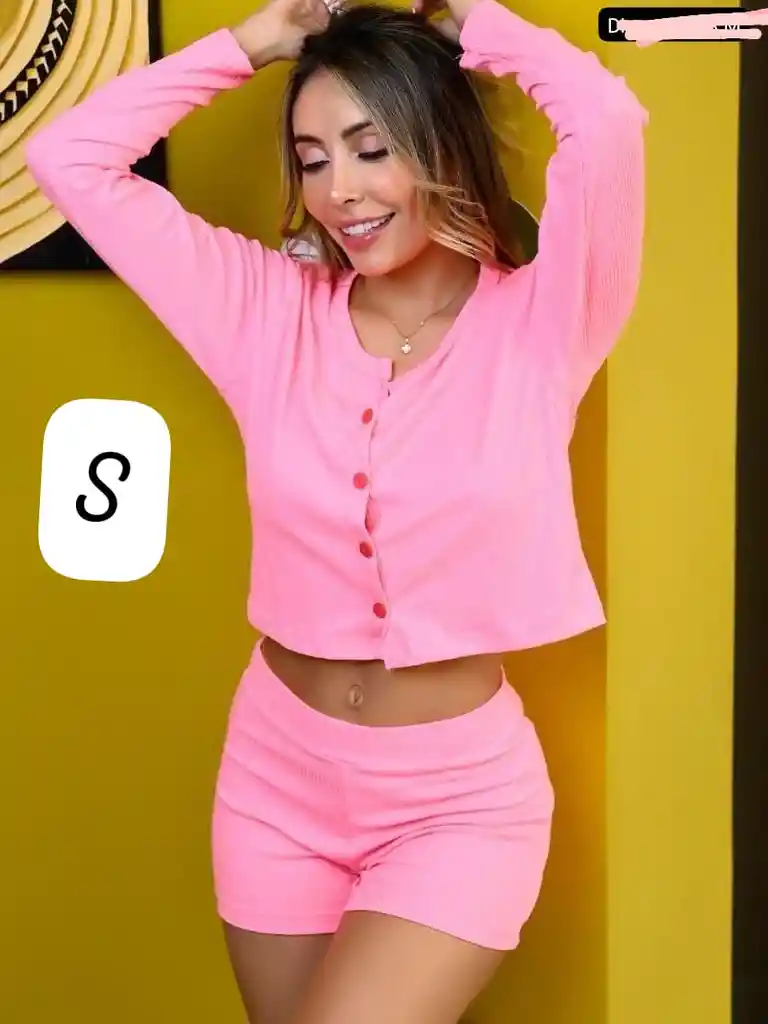 Conjunto de dos piezas en tela Rib licrado Rosa Talla S