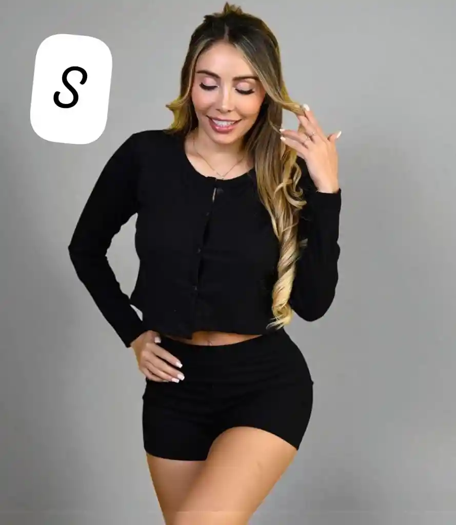 Conjunto de dos piezas en tela Rib licrado Negro Talla S