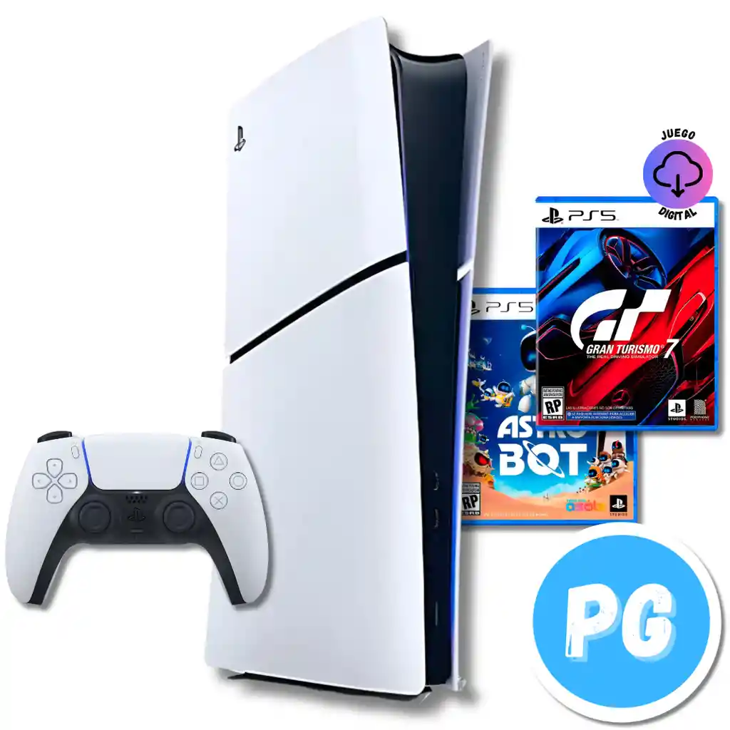Consola Playstation 5 Slim Digital 825GB con 1 Control + Gran Turismo 7 (Digital) + Astro Bot (Digital)