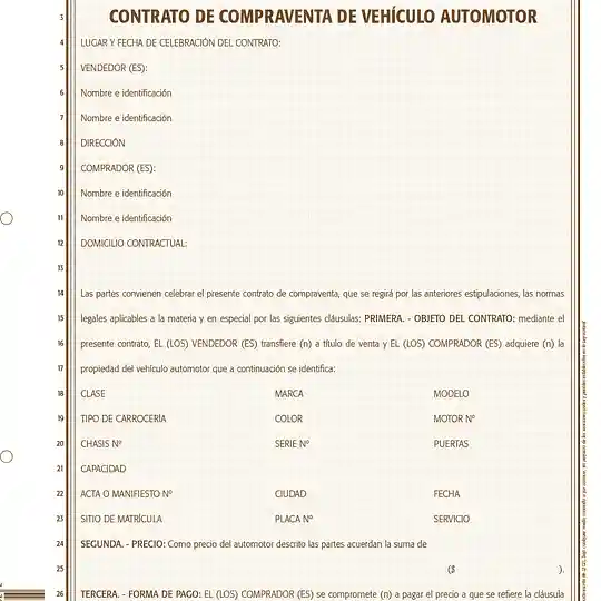 CONTRATO COMPRA VENTA DE VEHICULO AUTOMOTOR MINERVA VENTA X UND.
