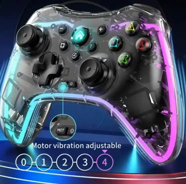 "Bienvenidos a GENUINOS SHOP Tecnología del futuro" ¡Somos expertos en los mejores artículos de tecnología, belleza y hogar con amplia trayectoria y calidad garantizada! DESCRIPCION DEL PRODUCTO El Control Inalámbrico Gamepad Transparente RGB Joystickes un innovador controlador. Compatible con Play 4 / PC / Nintendo Switch/ Celular 4 y ofrece una jugabilidad precisa y cómoda para todas tus aventuras. Cada detalle del diseño del gamepad se ha fabricado para ofrecerte una experiencia fluida y sin esfuerzo al incluir una impactante iluminación RGB. Controlador de juego inalámbrico con iluminación RGB transparente, Joystick, Gamepad para Play 4 / PC / Nintendo Switch/ Celular Especificaciones 1) Nombre del artículo: Controlador de juego inalámbrico 2) Material: ABS 3) Color: Transparente 4) Tamaño: 16 cm * 12 cm * 6,5 cm 5) Modelos compatibles:Play 4 / PC / Nintendo Switch/ Celular 6) Característica: Con efecto de luz colorida Especificación: Distancia inalámbrica: menos de 10 metros Dispositivos compatibles: para Switch/PS/PC/IOSMFI Batería: 600 mAh Tiempo de uso: 10horas Tiempo de carga: 4 - 6 horas Color: Transparente IMPORTANTE Para poder tener una buena experiencia en tu compra, te recomendamos que leas detalladamente las siguientes recomendaciones: • Lee completamente la descripción del producto. • Revisa muy bien que sea el producto que necesitas para evitar devoluciones. Garantía del vendedor: 30 días