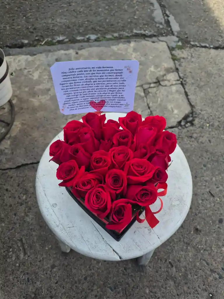 Caja corazon de rosas rojas escogidas cuidadosamente para que expreses tu amor, o para dar un regalo de cumpleaños ,aniversario o cualquier ocasión, acompañada de follajes y moño. Si deseas tarjeta ( mensaje) , personalizado déjalo en comentarios o escríbenos. El color de la caja esta sujeta a cambios según disponibilidad .