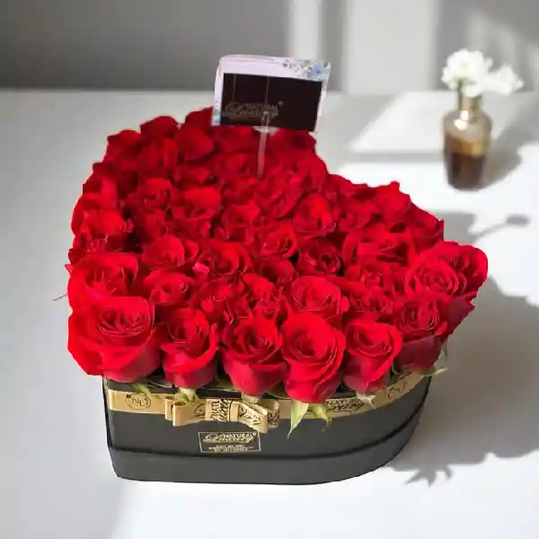 50 Rosas Naturales en Caja Corazón – Luxury Natural Espectacular arreglo de 50 rosas naturales frescas, presentado en elegante caja en forma de corazón. Un diseño sofisticado y romántico, ideal para expresar amor en ocasiones especiales. Elaborado con flores de alta calidad y presentación premium. ✨ Rosas naturales frescas · Presentación luxury