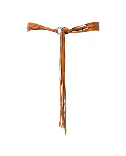 Talla M Para Mujer en Cuero 100% Piel Vacuno Con Argolla Metálica Central de 30 mm a la Que se Anudan Flecos de Cuero Creando Movimiento Sutil y Decorativo. Mini Remaches en Punta de Tiras Que Añaden Acento Distintivo. Ideal Para Complementar Looks Con Actitud Bohemia y Toque de Rebeldía Elegante. Ean- 219G003Caf161126 Plu- 1111133221152.