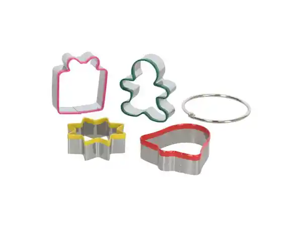 Set de 4 Cortadores de Acero Inoxidable Para Galletas. Cuenta Con Formas de Reno Casa Estrella y Viejito Pascuero