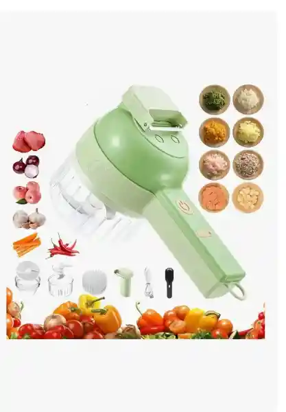 Cortador de verduras eléctrico inalámbrico multifuncional Puedes pelar frutas y verduras, picar y triturar el jengibre, la cebolla y el ajo, ¡incluso lavar la tabla de cortar y la encimera de la cocina con el cepillo incluido! Características Juego de cortador de verduras eléctrico de mano 4 en 1: incluye funciones 4 en 1 de rebanar, cocinar, pelar y limpiar el cepillo. Con él, puedes tener una cortadora de verduras eléctrica y una picadora de carne eléctrica al mismo tiempo. Una máquina es multipropósito, lo que hace que la preparación de alimentos sea más fácil y rápida. Limpieza con una sola tecla, se enjuaga toda la máquina, se agrega agua al puerto de alimentación para comenzar con una tecla, y se puede agitar y limpiar durante 5 segundos.